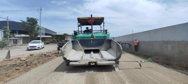 該項目為期60天,建設(shè)內(nèi)容涵蓋道路、排水、給水、照明及綠化等多個方面,其中道路工程由山西科坤建筑工程有限公司承建。施工現(xiàn)場全程嚴(yán)格按照國家道路建設(shè)標(biāo)準(zhǔn)進(jìn)行,主要施工環(huán)節(jié)為水穩(wěn)層攤鋪與壓實。作業(yè)期間,山推SPF82-G攤鋪機(jī)與一臺輪胎壓路機(jī)、一臺單鋼輪壓路機(jī)協(xié)同配合,高效完成了當(dāng)前階段的水穩(wěn)層施工任務(wù)。