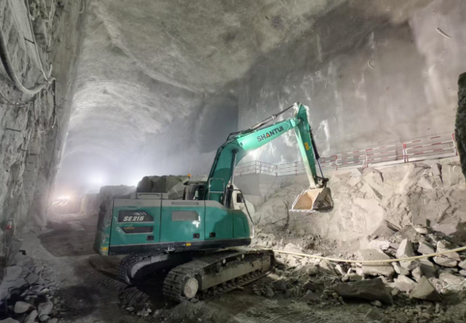 據(jù)介紹,該工程項(xiàng)目位于山東省中部,是國家規(guī)劃建設(shè)的重大能源基礎(chǔ)設(shè)施項(xiàng)目,總投資逾100億元,需開挖水道系統(tǒng)工程隧道2000米以上,以及引水系統(tǒng)斜井等高難度施工作業(yè),地理環(huán)境多變,特別是隧道內(nèi)施工,面臨著空間狹小、粉塵、潮濕等諸多挑戰(zhàn)。“隧道內(nèi)施工,對挖掘機(jī)的通過性、操縱靈活性要求極高,這臺山推215電動挖掘機(jī),日常操作動作順暢,連貫性強(qiáng),尤其適合長時間高強(qiáng)度作業(yè),幾乎無動力衰減,而且不需要更換濾網(wǎng)濾芯,即使環(huán)境惡劣也不怕,用著不僅省錢還省心。”挖掘機(jī)操作手說道。
